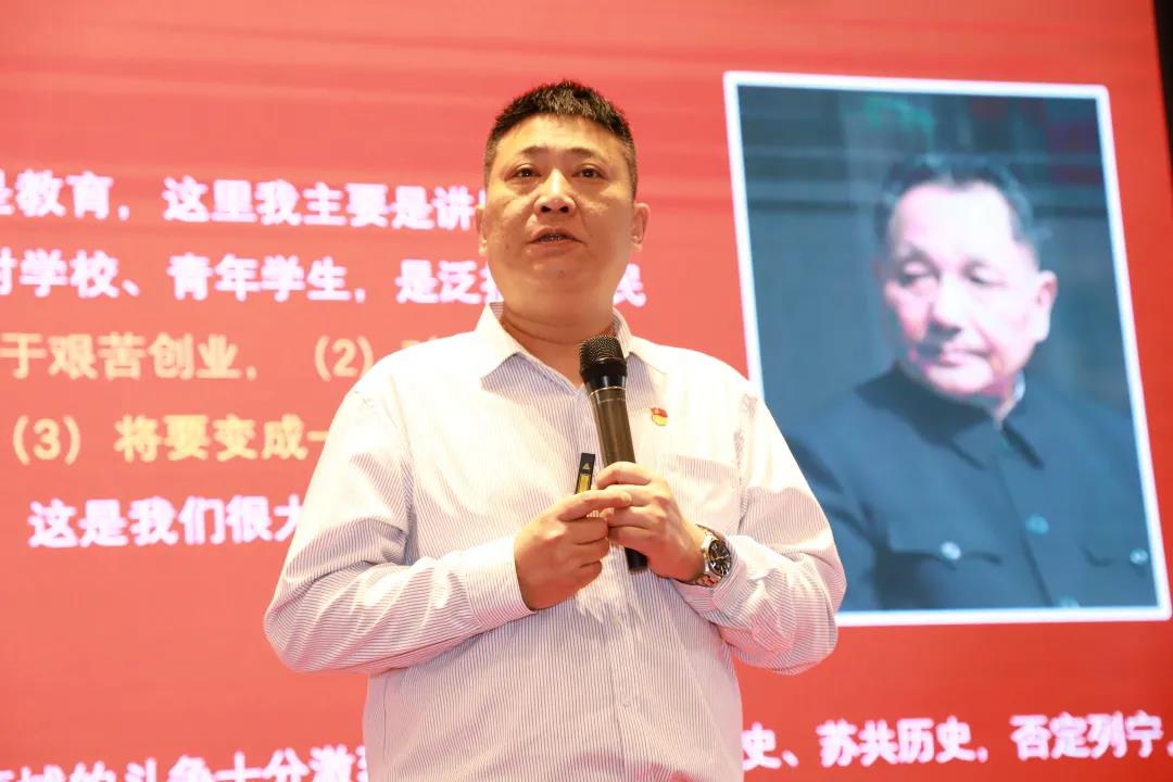 施文忠老师以时间为轴线,从“南湖中共一大”为开端仔细回顾了中国共产党艰难曲折、波澜壮阔的发展历史。他强调,从嘉兴南湖的一艘小船,到掌舵中国巨轮,带领中华民族实现从站起来、富起来到强起来的伟大飞跃,中共共产党的发展“惊世界之殊”。百年党史,生动记录了中国共产党从小到大、由弱到强,不断从胜利走向胜利的光辉历程,蕴含着十分丰富的思想资源、实践智慧和精神力量。大家要积极主动在百年党史中寻找“中共为什么能”的答案,在后续工作中,扎实学好党史、新中国史、改革开放史和社会主义发展史,以思想为舵,学习为帆,实践为桨,不断从中汲取奋进力量,增强责任担当,学在前、走在前、干在前。