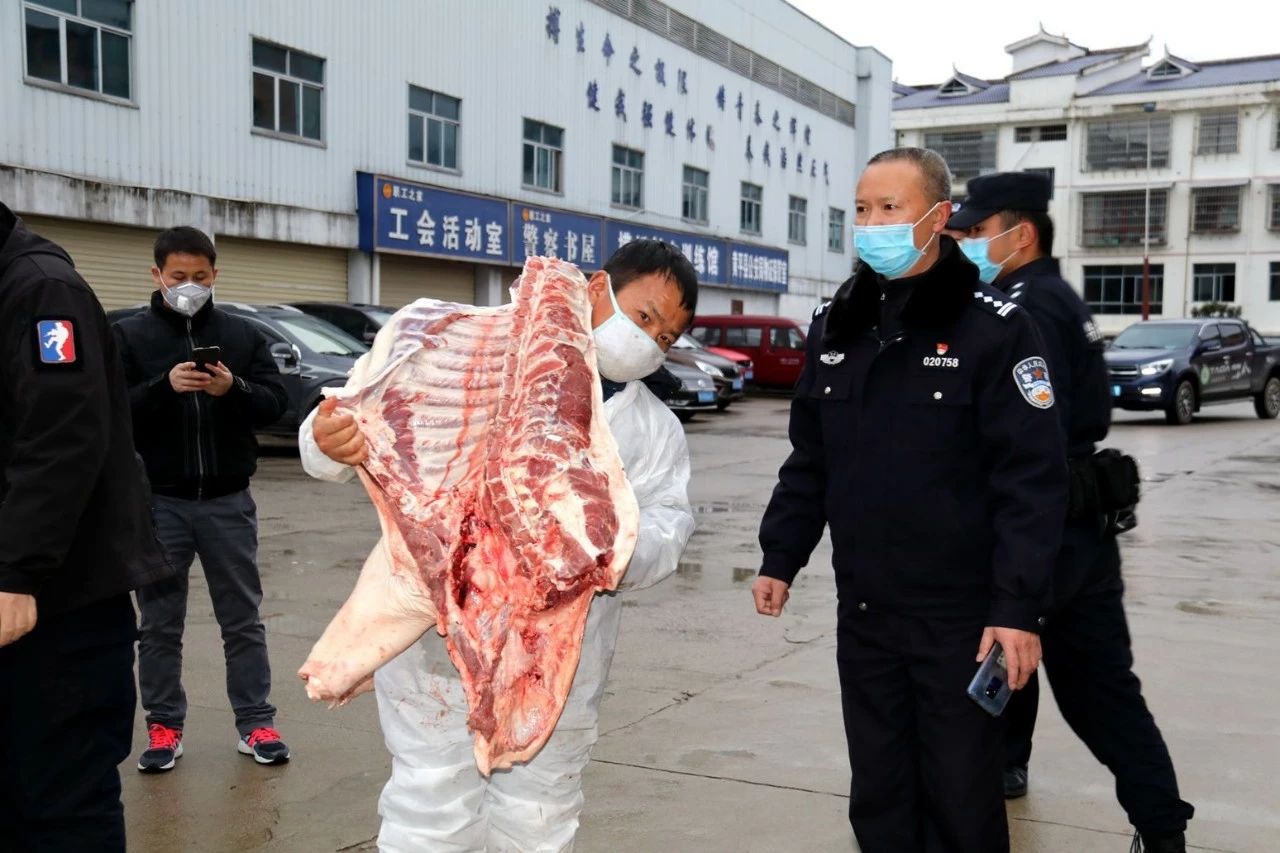 ▲新冠疫情爆发后,贵州太阳成集团tyc122cc入口七环向抗疫一线警员捐赠500斤猪肉