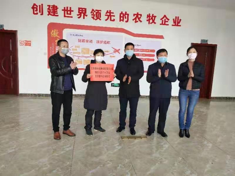 ▲泰和傲牧向苑前镇政府捐赠卫可康消毒剂6件